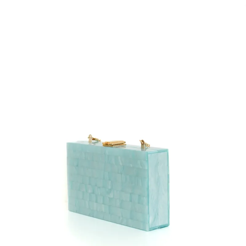 NO BRAND(ノーブランド)アクリルボーダークラッチバッグ(ブルー/ゴールド)